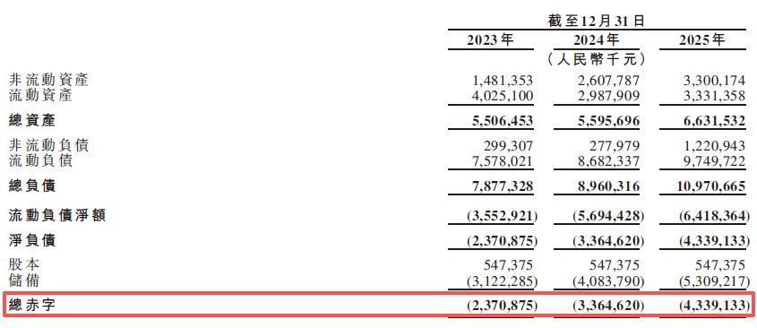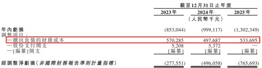 2025年末总赤字43.39亿元,赎回负债产生财务成本