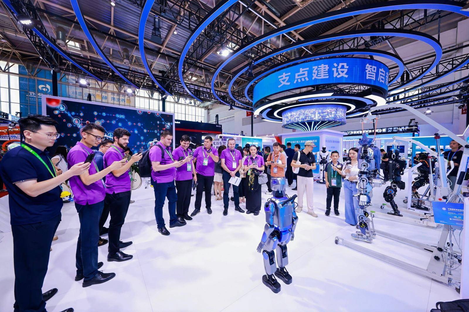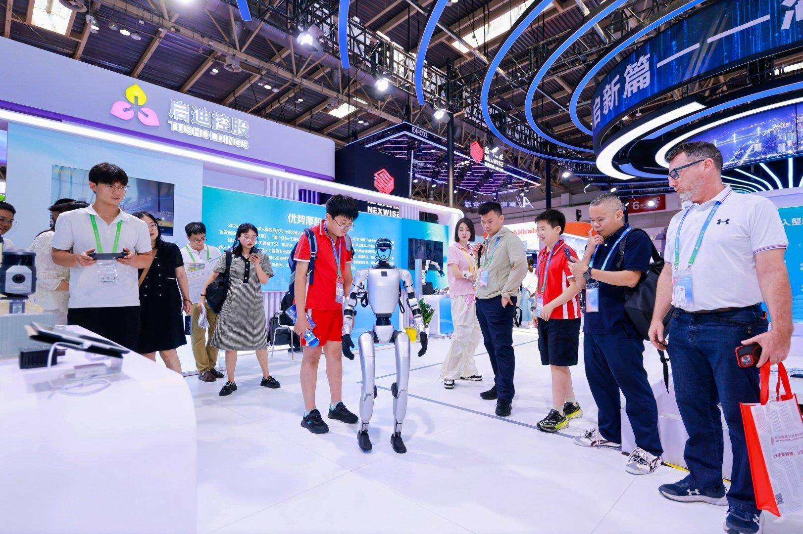湖北人形机器人产业链专题展区,观众组团参观。(省贸促会供图)